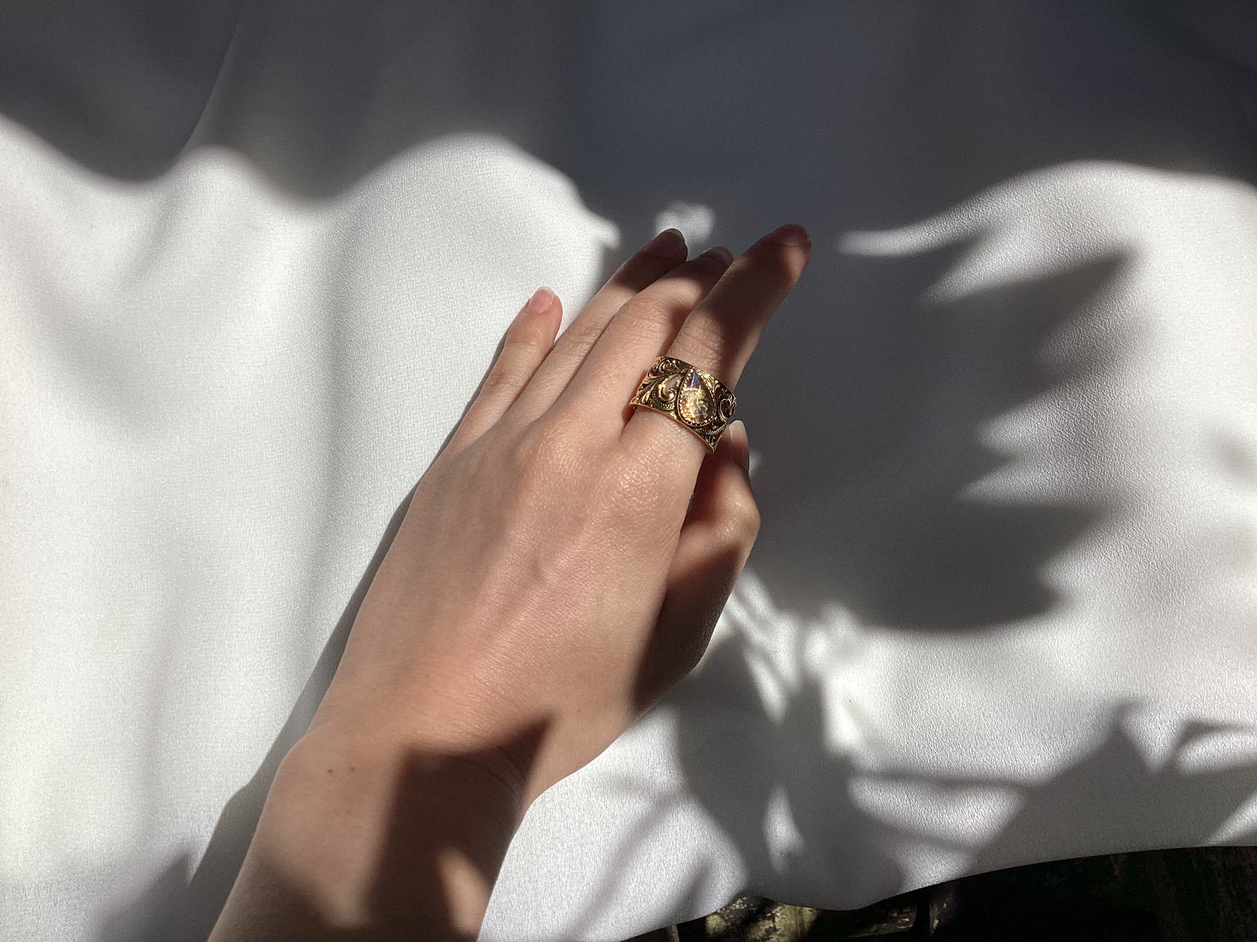 ローズカットのように薄く、丁寧にスライスされたこのダイヤは、石が本来持っていた内包物や淡い色彩を、隠すことなく芸術的に映し出します。 それは、経験を重ねてきた大人の女性が持つしなやかな強さと優しさを象徴しているかのよう。